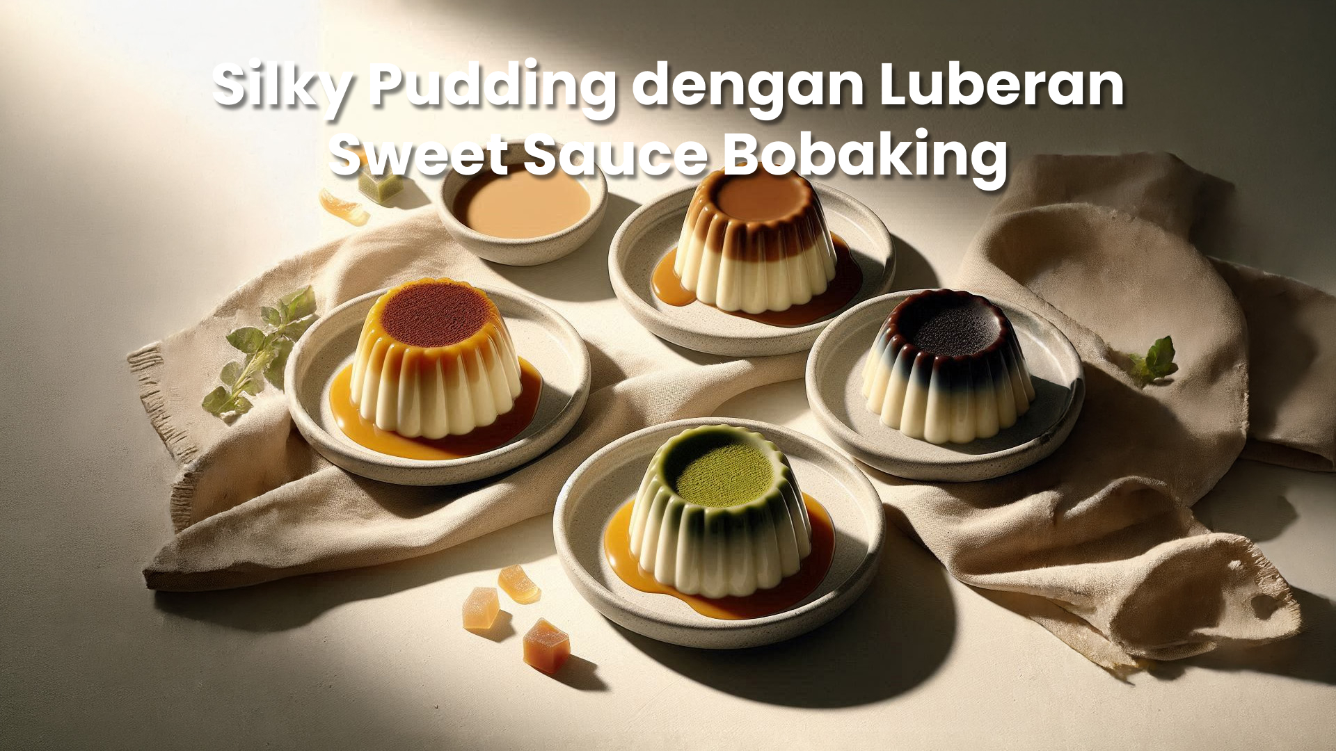 - Cara Penyajian: Setelah pudding set dan dingin, tuangkan Sweet Sauce di atasnya hingga menutupi permukaan dan meluber cantik ke pinggiran gelas atau piring saji. Untuk sentuhan akhir, tambahkan sedikit Bobaking Coffee Jelly untuk memberikan kontras tekstur yang unik.