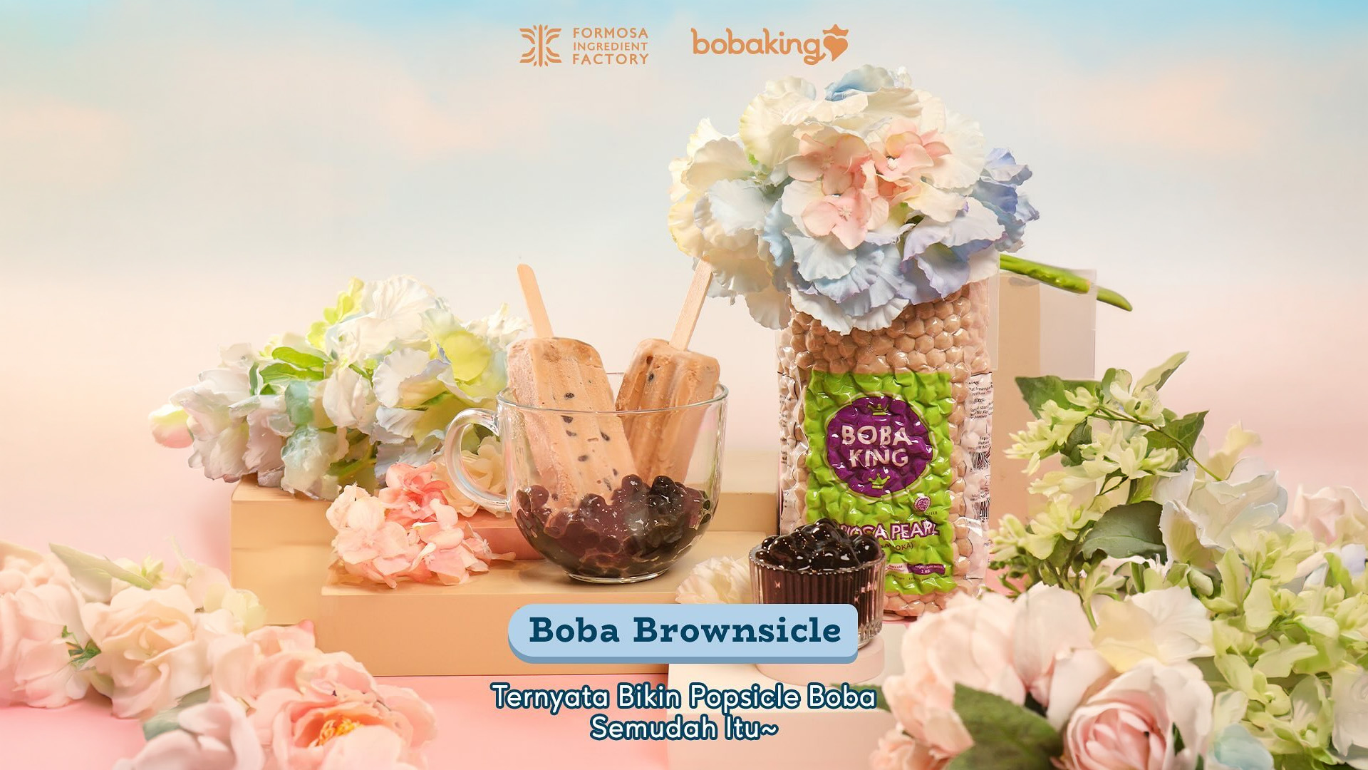 Brownsicle (Brown Sugar Popsicle) adalah kreasi frozen dessert yang sedang tren. Campuran susu segar dan Bobaking Brown Sugar Syrup dibekukan menjadi es stik yang menyegarkan. Anda bisa memberikan teknik marbling (efek marmer) di dalam cetakan es sebelum dibekukan untuk menciptakan visual yang estetik dan rasa manis yang tidak flat di setiap gigitan.