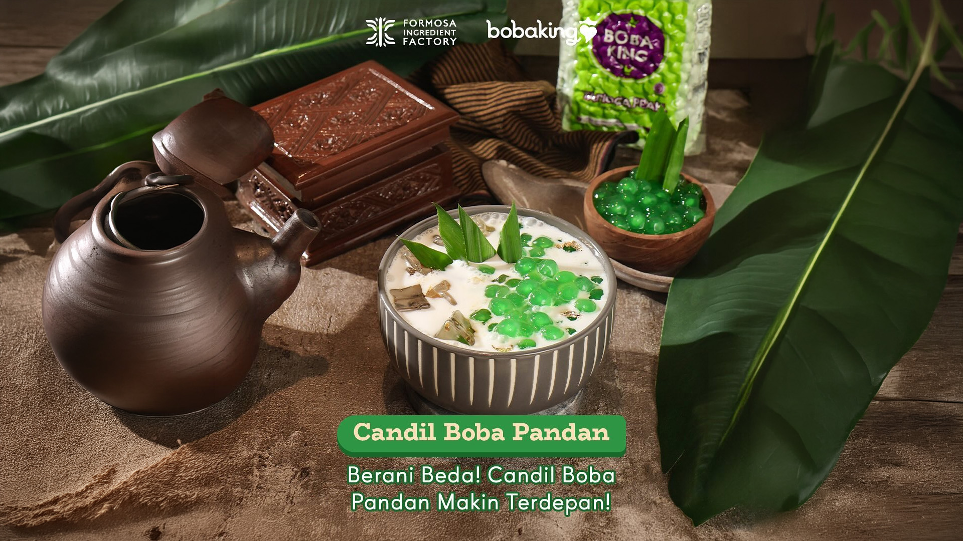 Inovasi hidangan penutup yang menggabungkan lembutnya biji salak/candil rasa pandan dengan boba. Bobaking Brown Sugar Syrup digunakan sebagai kuah kental yang menyatukan aroma wangi pandan dengan manisnya karamel. Viskositas sirup yang pas memastikan setiap butiran boba dan candil terlapisi dengan sempurna, memberikan kilauan (glaze) yang cantik.